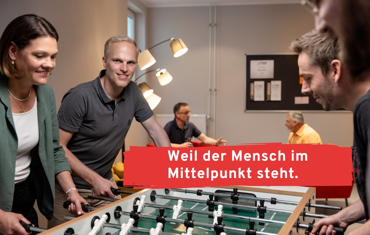 Offene Zusammenarbeit, kurze Wege und regelmäßige Team-Events sorgen für ein Arbeitsumfeld, in dem man sich wohlfühlt und gemeinsam wächst.
